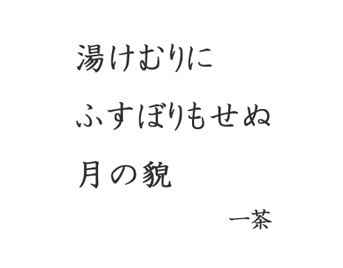一茶とは親交が深く、この句では、湯けむりの向こうに見える旧友・露白の顔と月をかけて詠んでおり、
